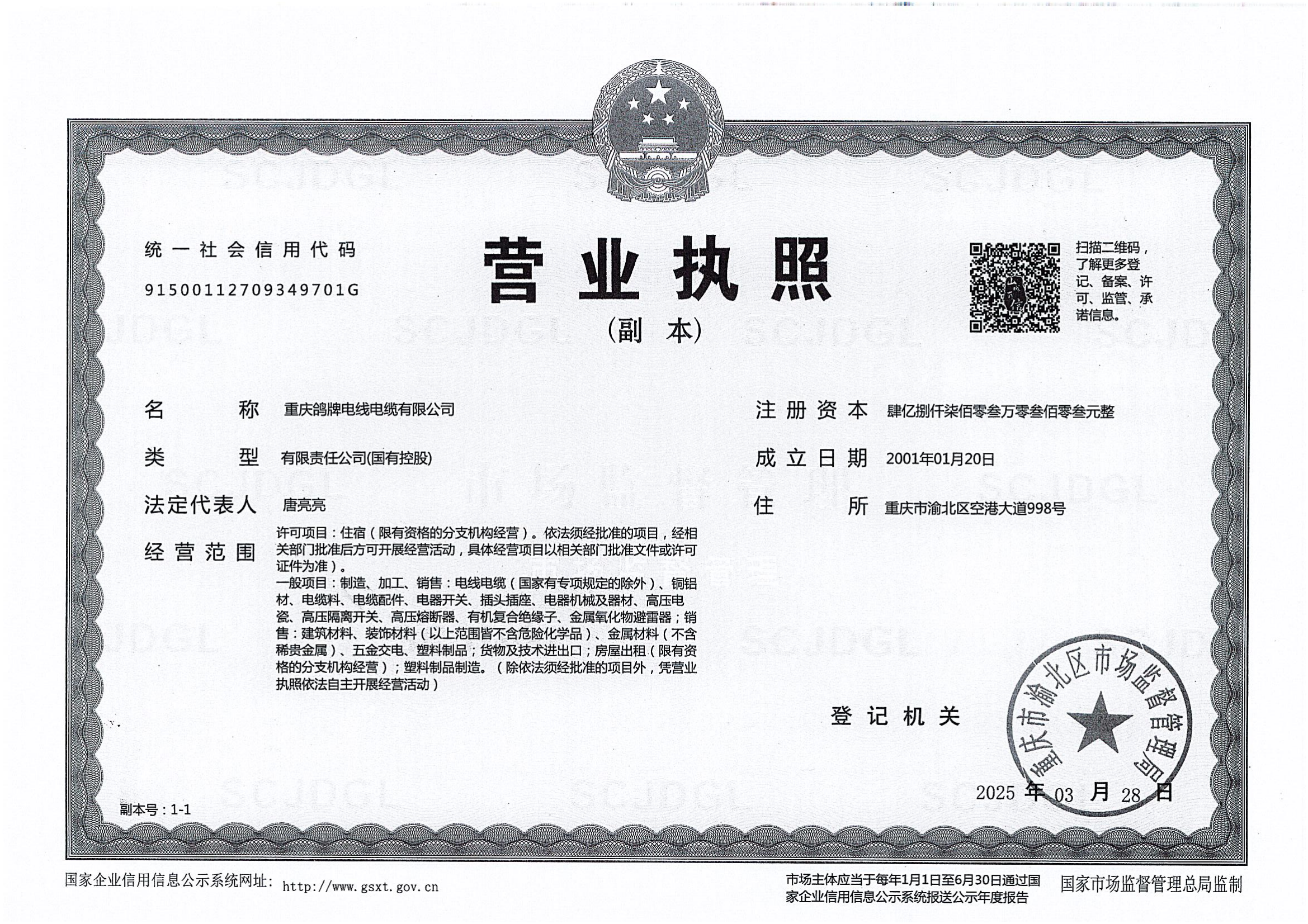 目前,公司鴿牌系列產(chǎn)品被評為“國家質(zhì)量AA信譽(yù)資質(zhì)”、“重慶名牌產(chǎn)品”;鴿牌公司被授予“全國五一勞動獎狀”、“國家高新技術(shù)企業(yè)”、“全國工業(yè)品牌培育示范企業(yè)”、“國家級綠色工廠”、“重慶老字號”等多項稱號,蟬聯(lián)11屆“中國線纜產(chǎn)業(yè)最具競爭力企業(yè)100強(qiáng)”,連續(xù)14年入選“重慶制造業(yè)企業(yè)100強(qiáng)”,連續(xù)17年入選“重慶企業(yè)100強(qiáng)”。